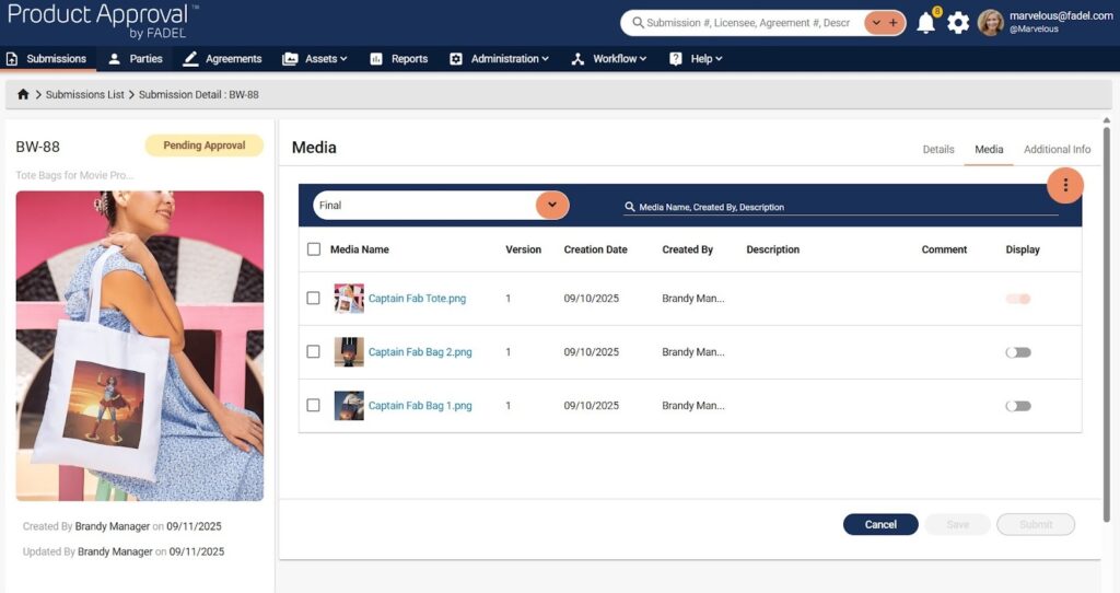 Product approval is critical to brand protection, quality assurance, and regulatory compliance, yet many licensors rely on manual and disconnected workflows. FADEL’s Product Approval solution addresses these challenges across large and complex licensee networks, helping organizations reduce delays, minimize risk, and maintain consistent brand standards.